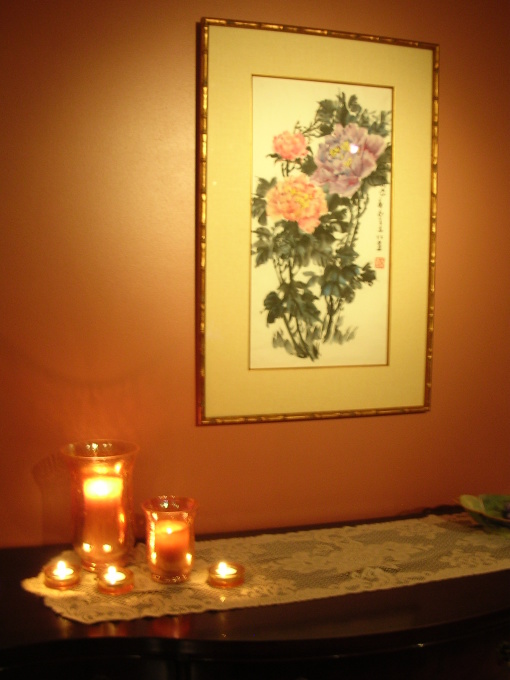 We live in a New England seaport town, once known as the “Gateway to the Orient,” so we thought it was appropriate to add a touch of Asian artwork. My husband gave me this painting as a wedding gift. It adds just the right touch of feminine to a room than can lean very masculine in color and textures with dark wood. White woodwork freshens the balance too.