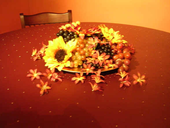 These are left over silk flowers from my bridesmaid bouquets that I threw into a basket then realized – hey that works! ! Less is more.