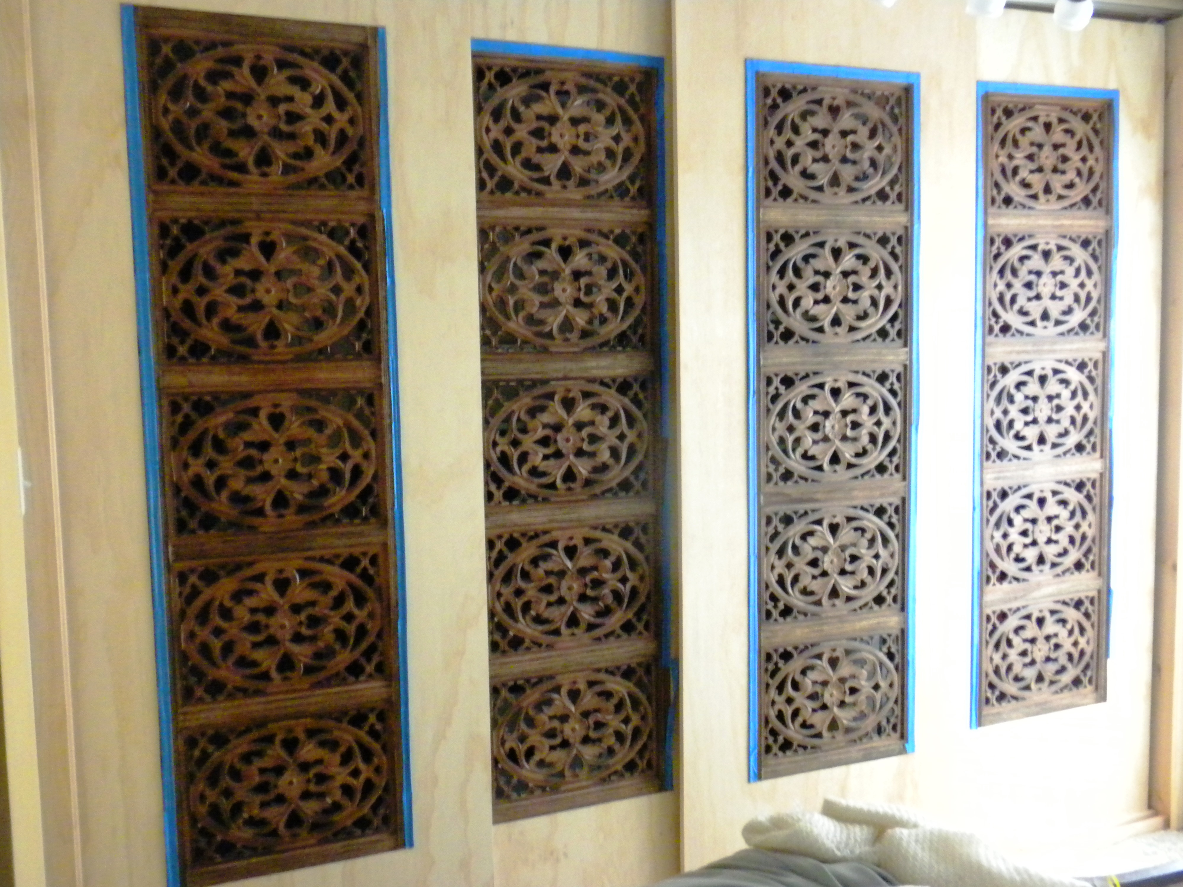 See how we turned a hideous nightmare into one of a kind feature wall. Oh yeah there is a closet behind there!